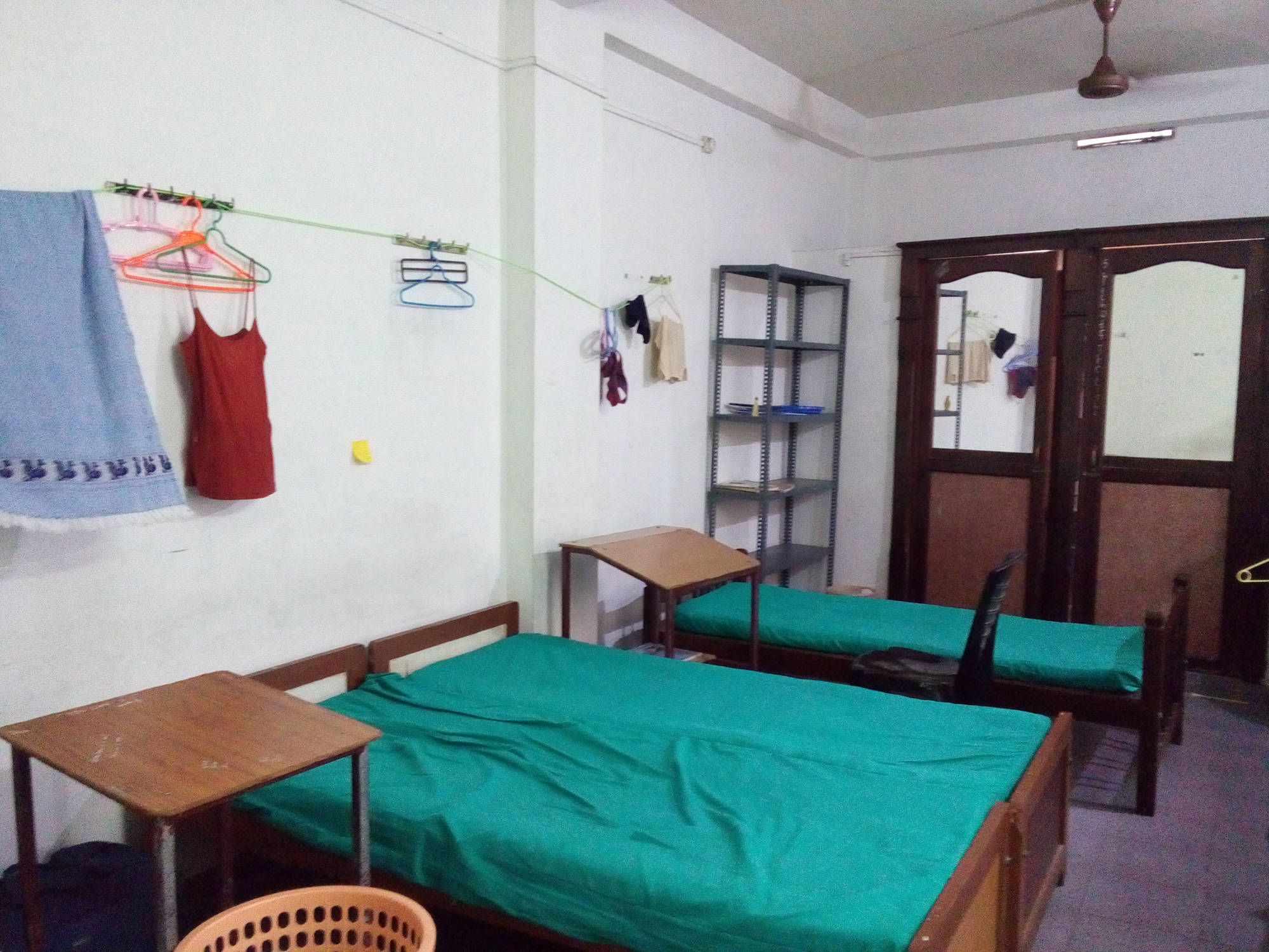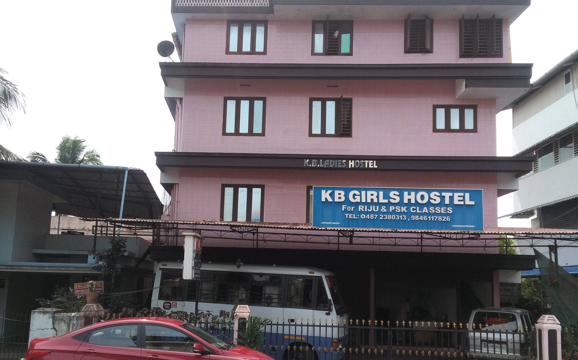 The KB Ladies Hostel building was designed and built for a Ladies Hostel. The structure is in RCC and walls are built by country burnt brick, windows with hard wood fixed with strong iron grills. This is a 3 storied building spread in 15 cents of land with built up area of 10,000 sq.ft.in ground floor and first floor and each floor consist 2,500 sq.ft. There are 600 sq.ft, 480 sqft, 320 sqft rooms attached two modern bathrooms. There are Kitchen, Dining Hall, Prayer room, reception etc. at Ground Floor and Reading Halls around 900 sqft at each floor. There is strong and high compound walls. The first floor is surrounded with spear headed iron bars. The front side is protected with strong iron grills and gate. There are round the clock security guards to protected the building and inmates. There is adequate parking area for vehicles. Hostel owns its own Tempo Traveller and Doctor on call is available. There is 3 phase Electricity connection, Landline, Internet facility etc.